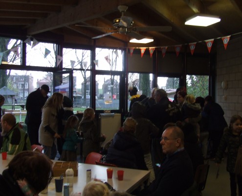Voor de liefhebbers was er koffie, thee of warme chocomel en voor alle kinderen was er ’n zakje met snoepjes en pepernoten.